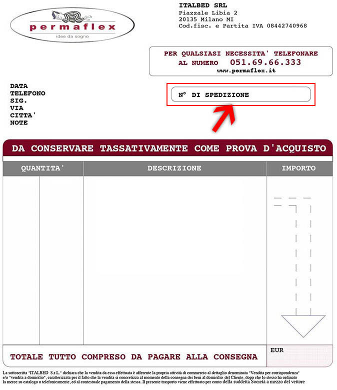 Per accedere e scaricare le fatture, inserite il vostro Codice Fiscale e il numero di spedizione indicato nella bollettina di consegna. Consulta la
